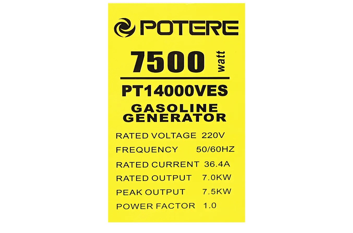 موتور برق پوتر مدل PT14000VES با توان 7.5 کیلووات.