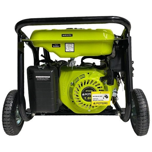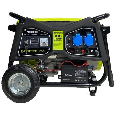 موتور برق بنزینی ظرفیت ۳.۸ کیلووات پوتر POTERE مدل PT8000VES استارتی به همراه چرخ و دسته و باطری عرضه میشود.
